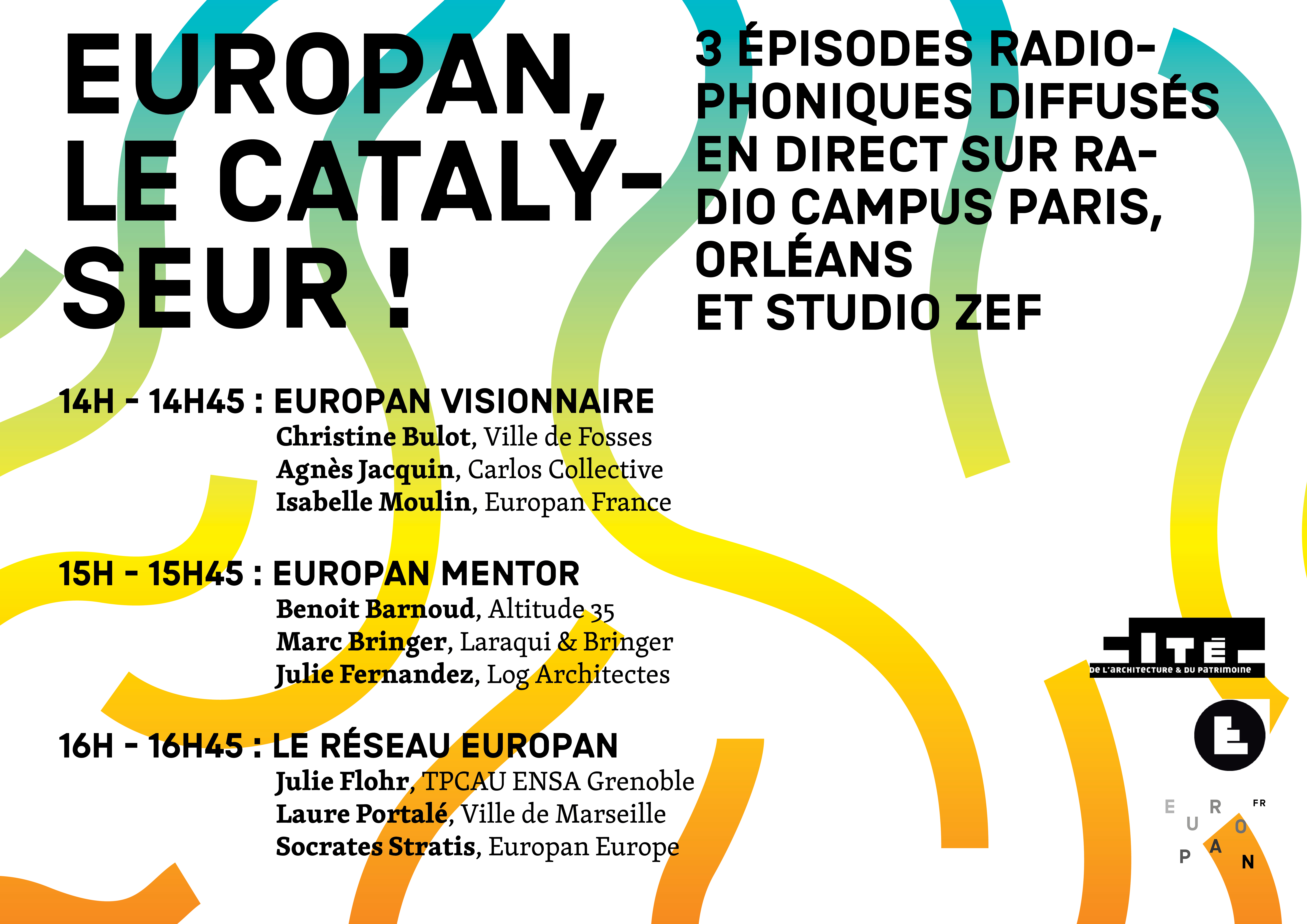Cet événement radiophonique s’est inscrit dans la programmation du Forum des 30 ans d’Europan. Il était accueilli par la Plateforme de la Création architecturale de la Cité de l’Architecture et du Patrimoine à Paris.